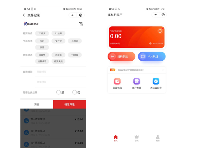 海科扫码王APP提供中小微商户入网,移动终端支付,资金统一结算,账务汇总查询等全面的支付结算服务,不仅能为广大商户提供便捷的线上收款服务,同时兼具支付营销、会员权益、账单查询、数据分心等丰富功能,助力广大商户快速收款、轻松对账、裂变引流,降低支付成本,实现高质量发展。